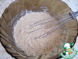 Добавить 1 яйцо, кефир, щепотку соли. Если тесто будет жидким, то можно оставить его на 15-20 минут для набухания хлопьев.