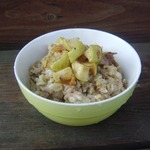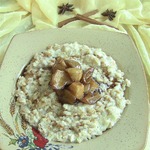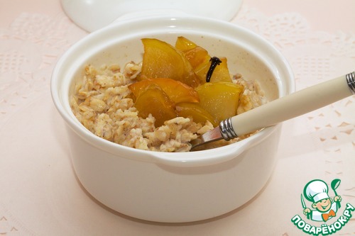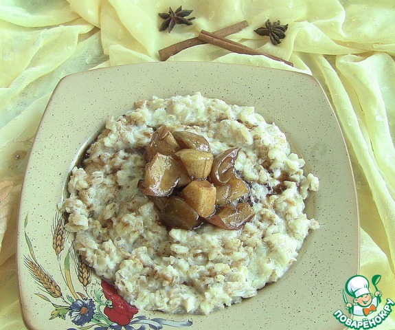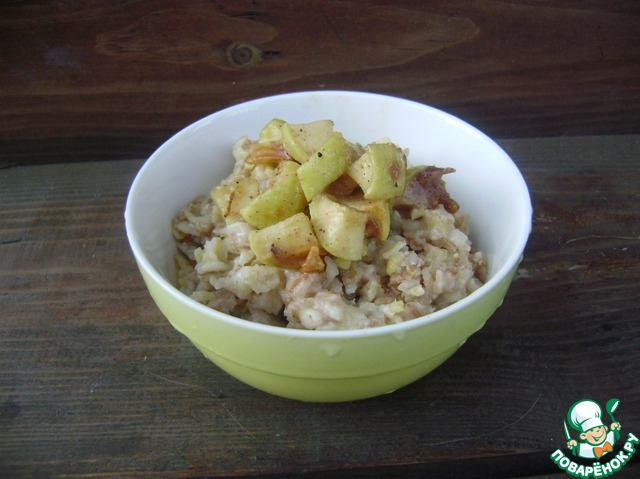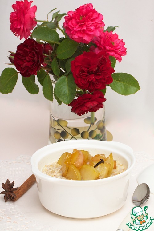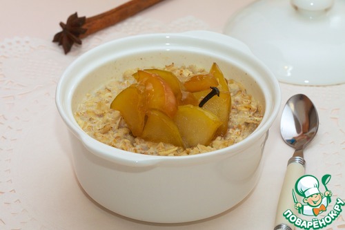 Накрыть крышкой и оставить для набухания хлопьев. Сервировать карамелизованными пряными яблоками.