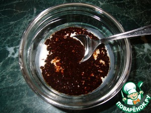 Молоко подогреть в микроволновке, всыпать в него растворимый кофе и перемешать до его растворения