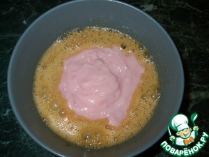 В другой посуде взбить вилкой яйцо и сахар до небольшой пены
