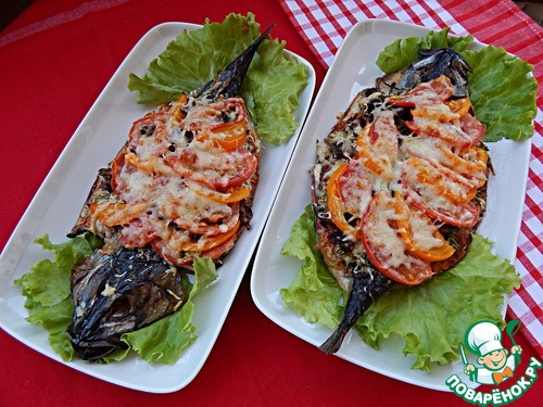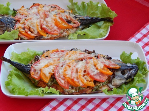 Рецепт «Скумбрия, запеченная с опятами и сметаной»: