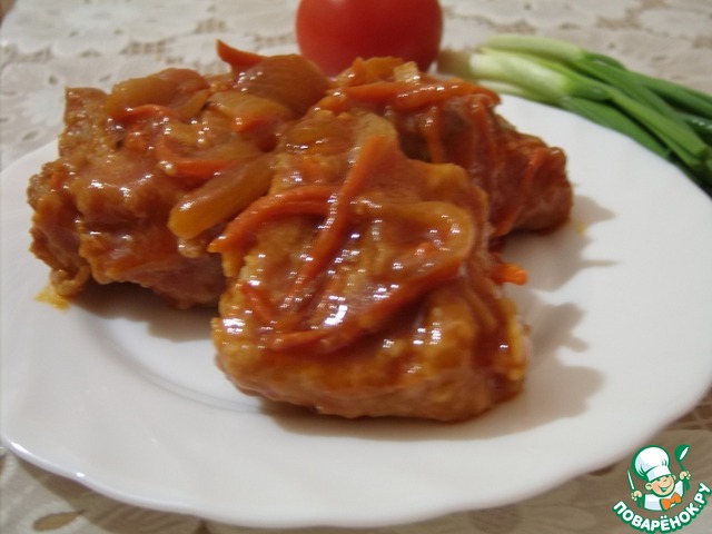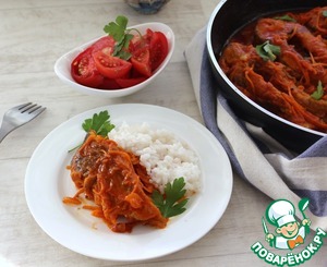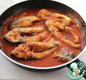 Готовила филе пикши. Я почему-то в маринаде больше люблю делать филе, чтобы потом косточки не попадались. Но добавила немного сахара, томат кисловатый был.