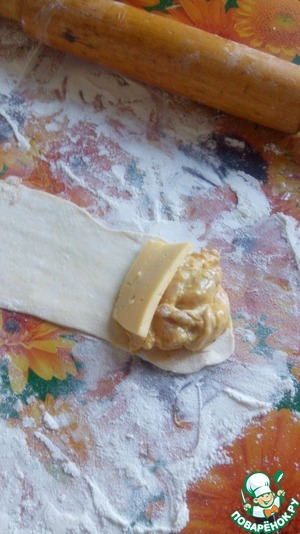 Завернуть желательно так, чтобы при запекании сыр не вытек.