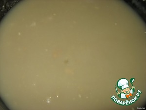 Разбавить бульоном, постоянно помешивая, чтоб не было комочков.