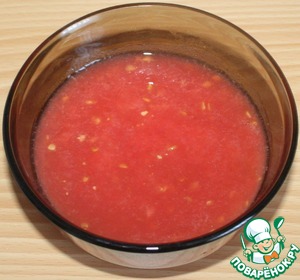 Помидоры обдать кипятком, очистить от кожицы, пропустить через мясорубку или протереть через сито.