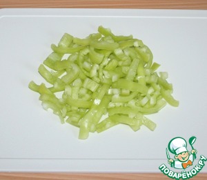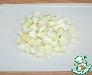 Кабачок очистить от кожуры и семян и нарезать на мелкие кусочки.