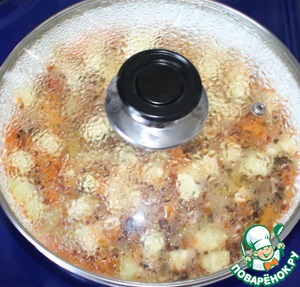 Накрыть крышкой и готовить на медленном огне в течении 15 минут.