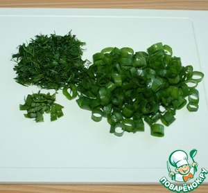 Зелень мелко нарезать.