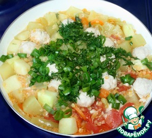 Овощное рагу с чечевицей и куриными фрикадельками