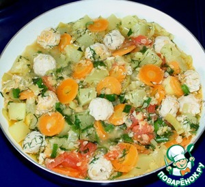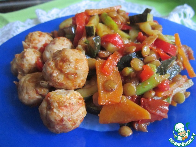 Рецепт «Овощное рагу с чечевицей и куриными фрикадельками»: