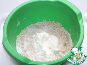 залейте горячим молоком, перемешайте и дайте настояться минут 10 под крышкой. Добавьте мягкое сливочное масло, сметану