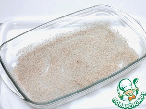 Смажьте форму для выпечки маслом, посыпьте сухарями