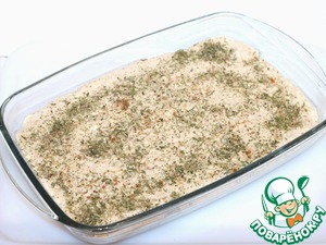 И выложите тесто. Присыпьте тесто 1 ч л. приправы.