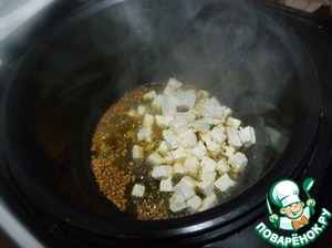 В чашу мультиварки налить растительное масло. Включить режим "жарка", время установить 25 минут.