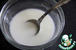 1 сл. л. крахмала заливаем небольшим колличеством воды и хорошо размешиваем. Добавляем уксус и сахар и размешиваем.