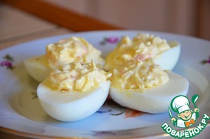 Сыр натираем на терке, крабовые палочки мелко режем.