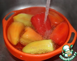 Перец ошпариваем кипятком и сразу же остужаем холодной водой из-под крана.