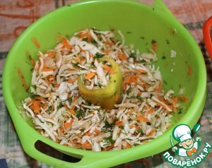 Добавляем не много соли (щепотки будет достаточно) и перемешиваем..., начинка, готова.