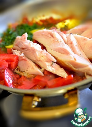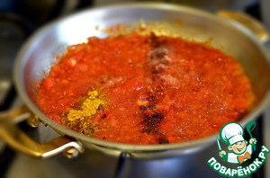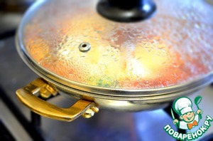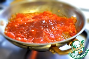 Тушить овощи в сливочном масле пару минут. Добавить 1 ч. л томатного соуса, смешанного с 1 ст. л воды.
