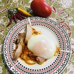 Добавить мелко нарезанную зелень, один свежий нарезанный кубиками помидор и кусочек копченой курицы.