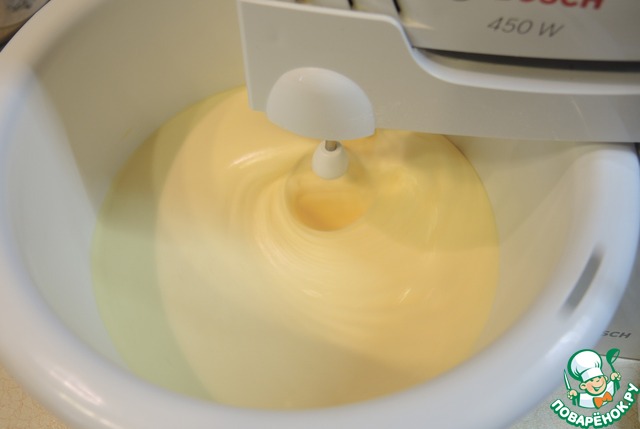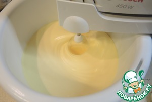Яйца хорошо взбиваем с сахаром до пышной массы.