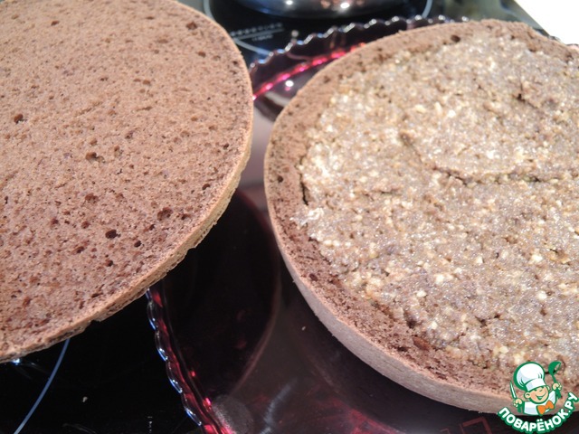 Срезаем с коржа "крышку" нашей шкатулочки, толщиной 1см и откладываем в сторону. Из основной части вынимаем всю мякоть, оставляя бортики, толщиной около 1 см., это и будет сама шкатулка.