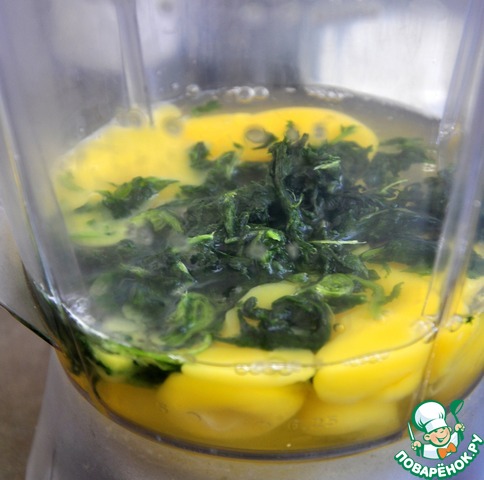 Переложить шпинат, яйца и молоко в блендер, посолить, поперчить.