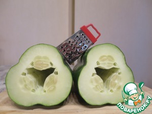 Предыстория. Всё началось на этот раз не по причине моей страсти к кулинарным экспериментам, а фраза мамы: "Сняла с грядки огромный огурец. Может, ты его пожаришь? Говорят люди, что огурцы можно жарить, а ты любишь всё такое необычное...". Почему именно глядя на большой огурец мама дошла до такой мысли - загадка. Наверно, потому что рядом с кабачками ввиду своих внушительных форм он терялся и вполне сходил за своего... а ведь кабачки жарят... Вкус жареных огурцов сравним со вкусом кабачка. Конечно, не обходится и без нотки индивидуальности... соевый соус делает композицию пикантнее. Кунжут - оригинальнее. Специи - насыщеннее.