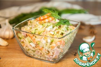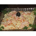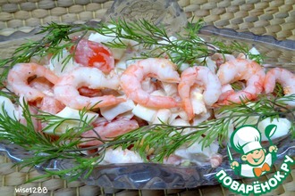 4. смешиваем кальмары, зелень, лук, нарезанные яйца... и добавляем майонез (немного грамм 100).