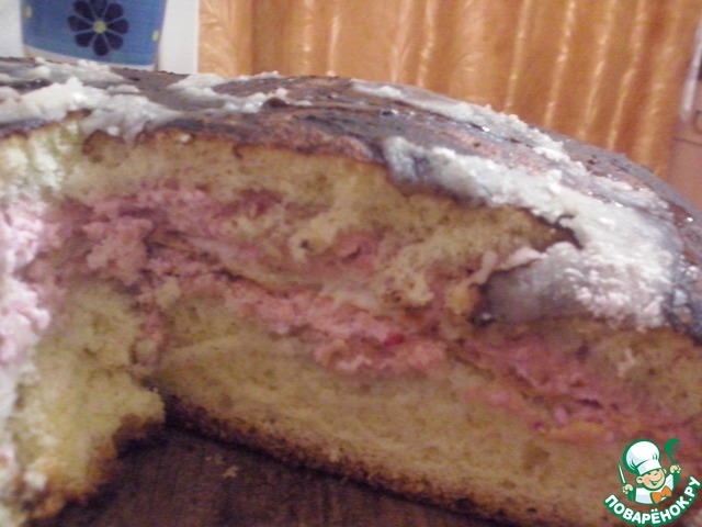 Принимайте новичка и мой первый здесь опубликованный рецепт))) Вчера подсмотрела у Катицы рецепт бисквита, получился очень вкусным. Сегодня, подумав, что на его основе можно сделать, приготовила сие... Один момент в дальнейшем учту (об этом позже), строго прошу не судить, я же только учусь))) Итак: