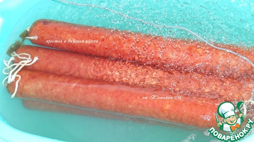 2. Колбасу готовить на решетке, если плохо перевяжете, может вытекать жир