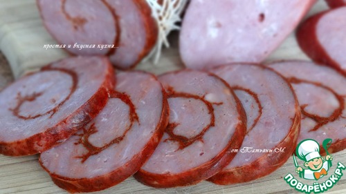 А также рулет из остатков колбасного фарша. Плотная, нежная, сочная, маложирная - но очень вкусная колбаса!!! И рулет из остатков - очень красивый и аппетитный!!! Оболочка - белковая, коллагеновая пленка для рулетов+сетка формовочная