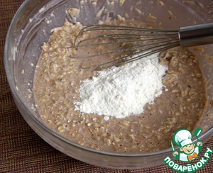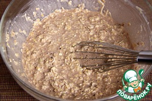 Если у вас с утра недостаточно времени подождать, чтобы хлопья набухли, то добавьте на этом этапе цельнозерновую муку (или хлопья, смолотые в муку) чтобы получилась слегка вязкая, но не сильно густая, консистенция, как на оладьи...
