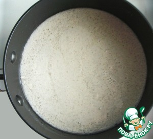 2. Кокосовое молоко влить в ковшик, поставить на огонь и довести до кипения.