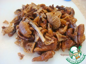 Грибы замочить в 1 литре кипятка на 15 минут.