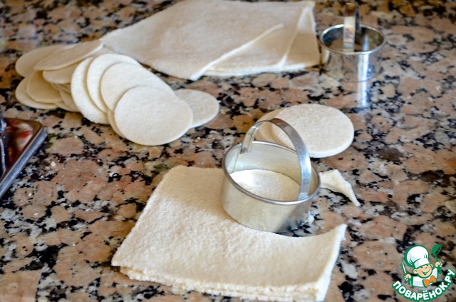3. Из каждого раскатанного куска хлеба вырезать по три кружочка.