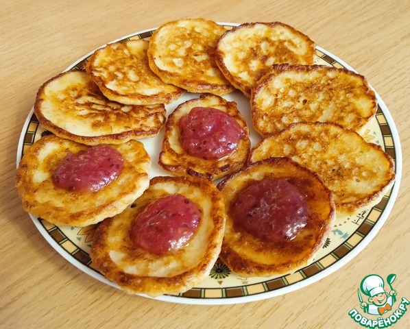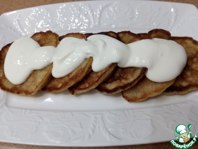 К оладушкам подаем сметану или джем, или и того, и другого побольше: