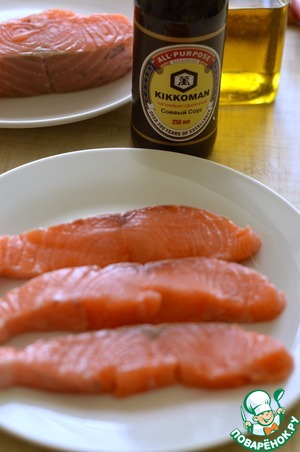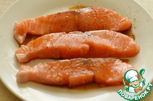 3. Соевый соус смешать с маслом и смесью перцев и смешать с рыбой.