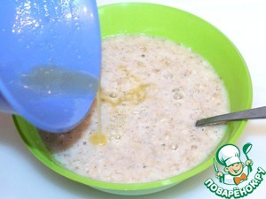 и выливаем к хлопьям. Взбиваем тесто до состоянии густой-густой сметаны.
