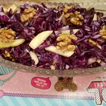 Добавить к капусте яблоки, измельченные грецкие орехи.