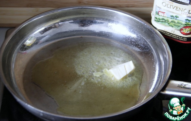 Нагреть сковороду и нагреть 2 вида масла.