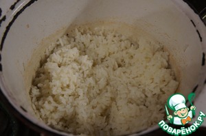 Осторожно перемешать все подготовленные продукты с готовым рисом и на 5 минут вернуть кастрюлю в духовку.