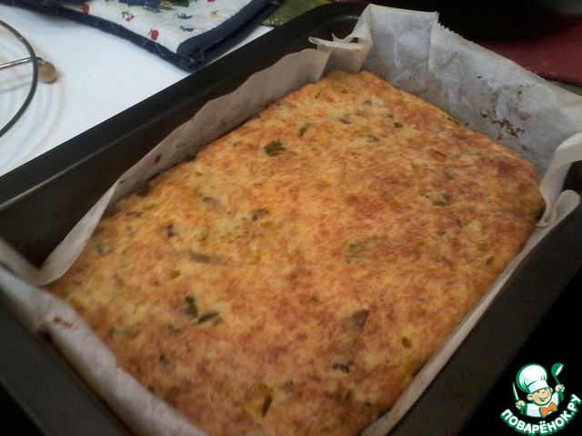 Выпекать пирог в течение 30-35 минут, пока хорошо не зарумянится.