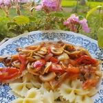 Эй, любители спагетти! Этот рецепт для вас. Лично меня в нем привлекло то, что в описании рецепта было написано, что это аппетитное вегетарианское блюдо понравится также и любителям мяса. Мой мясоед оценил:)