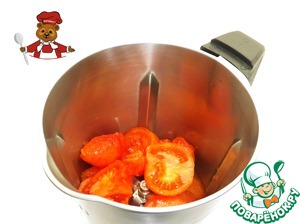 2. Поместите томаты в миксерную чашу, измельчите их в режиме "Блендер", скорость смешивания - 5, время - 30 секунд. |