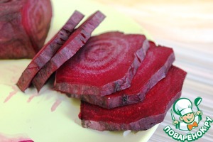Готовую свеклу нарезаю дольками, толщиной 0,5 см.