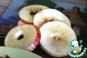 Яблоки тщательно мою и режу дольками, толщиной 0,5 см. Вырезаю серединку.
