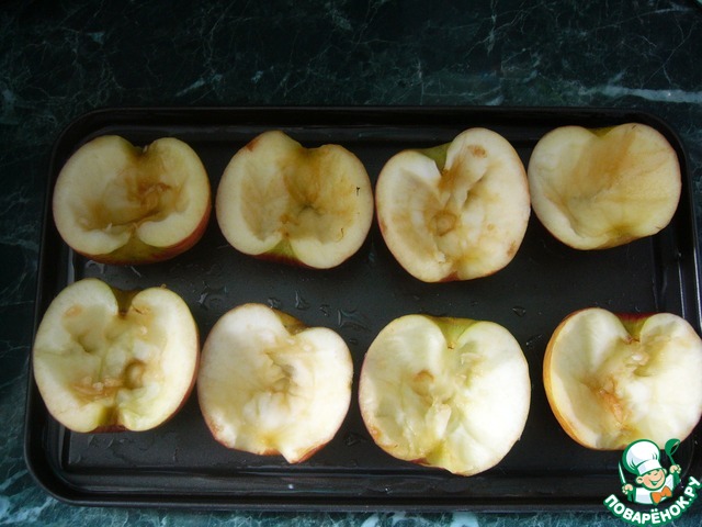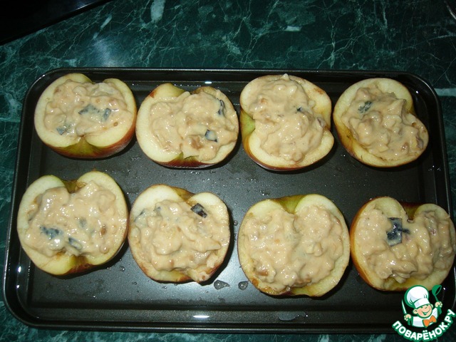 Заполнить половинку яблок полученной начинкой. Выпекать при 180 градусах-15 минут (ориентируйтесь по своей духовке)