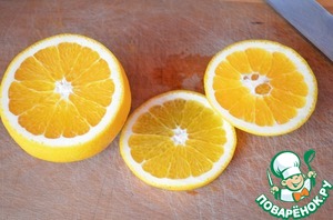 У апельсина срезать верхушку, так чтобы получилось чуть больше половины.