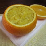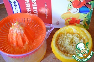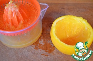 Отжать сок при помощи ручной соковыжималки, чтобы внутри апельсин стал пустым.